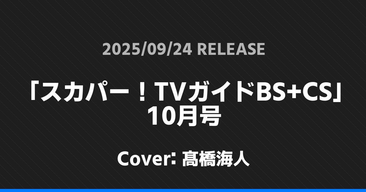 「スカパー!TVガイドBS+CS」10月号の表紙は髙橋海人さんです!