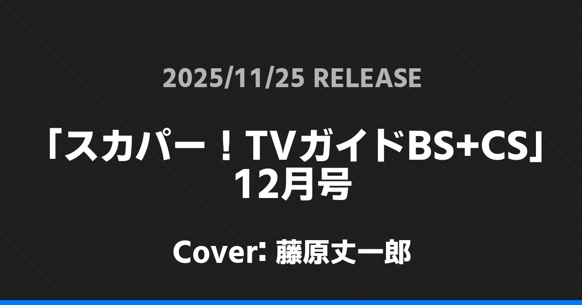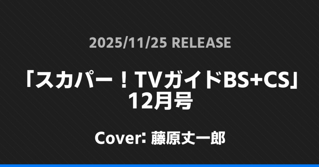 「スカパー!TVガイドBS+CS」12月号表紙は藤原丈一郎! なにわ男子 2026.01.24 ※本ページにはプロモーションが含まれています。 商品リンク Amazon 楽天ブックス セブンネット タワーレコード 詳細情報 発売日:2025/11/25 表紙:藤原丈一郎 「スカパー!TVガイドBS+CS」12月号の表紙は藤原丈一郎さんです! 「スカパー!TVガイドプレミアム」12月号表紙は原嘉孝! 「月刊TVnavi」1月号表紙は岩本照! ホームなにわ男子