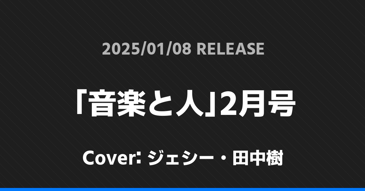「音楽と人」2月号の表紙はジェシー・田中樹さんです!