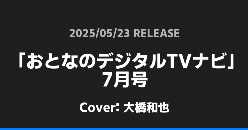 「おとなのデジタルTVナビ」7月号の表紙は大橋和也さんです!