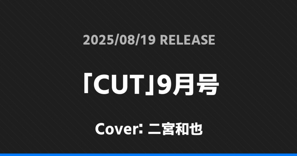 「CUT」9月号表紙は二宮和也! 嵐 2026.01.24 ※本ページにはプロモーションが含まれています。 商品リンク Amazon 楽天ブックス セブンネット タワーレコード 詳細情報 発売日:2025/08/19 表紙:二宮和也 「CUT」9月号の表紙は二宮和也さんです! 「月刊北國アクタス」9月号表紙は二宮和也! 「Duet Luxe」vol.3表紙は表紙:上田竜也・橋本良亮 表紙B面:寺西拓人! ホーム嵐