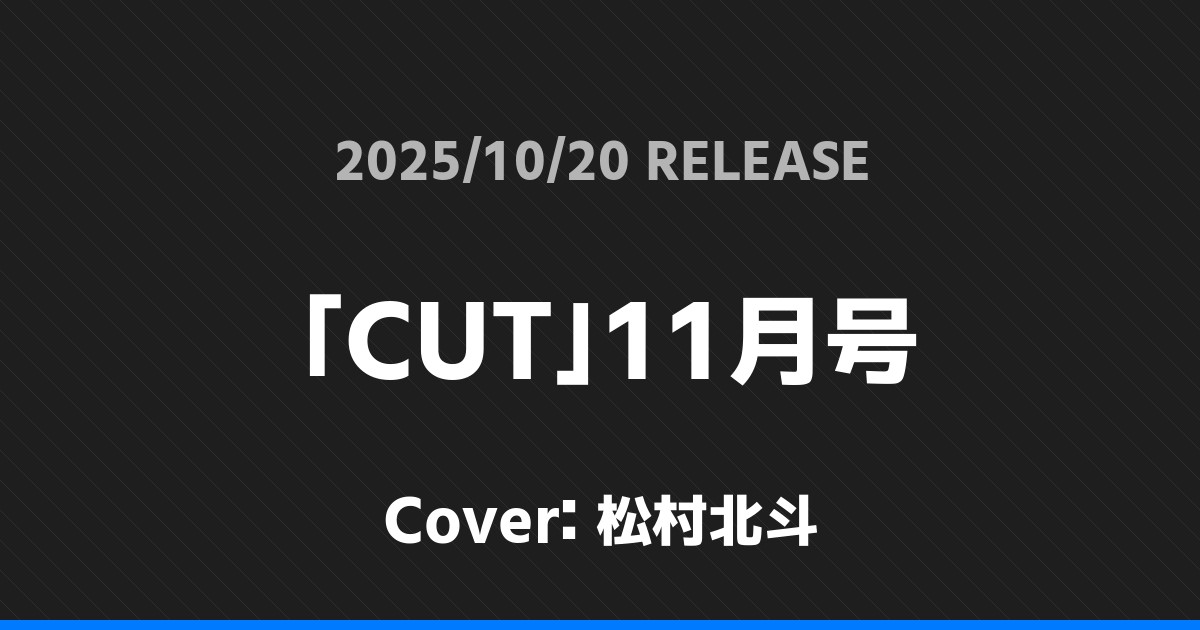 「CUT」11月号表紙は松村北斗! SixTONES 2026.01.24 ※本ページにはプロモーションが含まれています。 商品リンク Amazon 楽天ブックス セブンネット タワーレコード 詳細情報 発売日:2025/10/20 表紙:松村北斗 「CUT」11月号の表紙は松村北斗さんです! 「non-no」12月号増刊表紙は向井康二! 「AERA」10/27増大号表紙は向井康二! ホームSixTONES