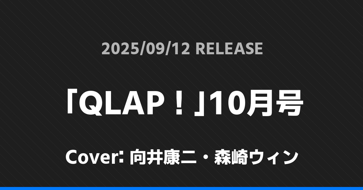 「QLAP!」10月号表紙は向井康二・森崎ウィン! Snow Man 2026.01.24 ※本ページにはプロモーションが含まれています。 商品リンク Amazon 楽天ブックス セブンネット タワーレコード 詳細情報 発売日:2025/09/12 表紙:向井康二・森崎ウィン 「QLAP!」10月号の表紙は向井康二・森崎ウィンさんです! 「FINEBOYS」10月号表紙は宮舘涼太! 「+act.」10月号表紙は宮舘涼太・水上恒司! ホームSnow Man