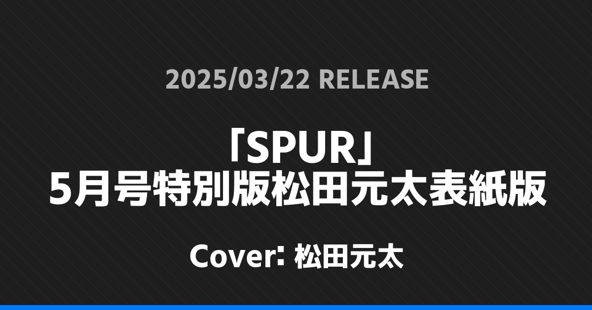 「SPUR」5月号特別版松田元太表紙版表紙は松田元太! Travis Japan 2026.01.24 ※本ページにはプロモーションが含まれています。 商品リンク Amazon 楽天ブックス セブンネット タワーレコード 詳細情報 発売日:2025/03/22 表紙:松田元太 「SPUR」5月号特別版松田元太表紙版の表紙は松田元太さんです! 「SODA」5月号表紙は安田章大! 「CanCam」5月号表紙は作間龍斗・山下美月! ホームTravis Japan