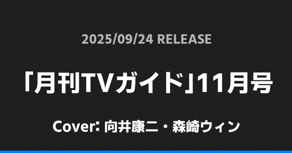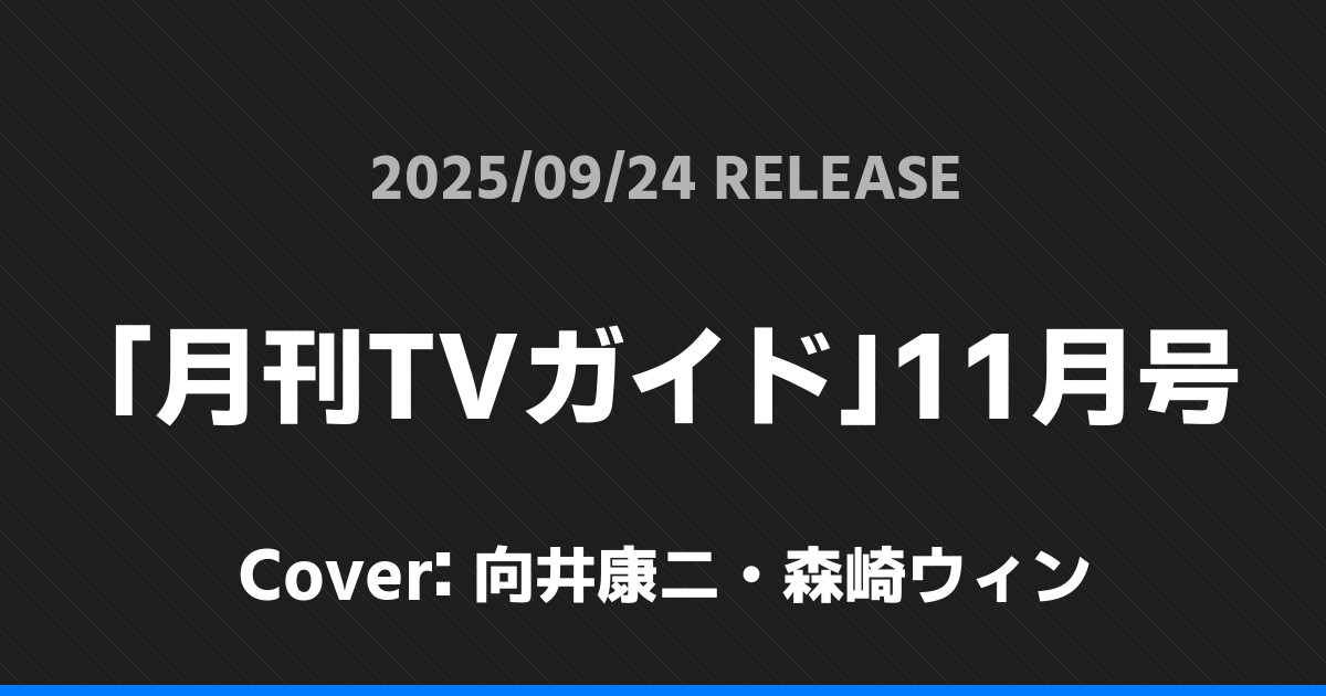 「月刊TVガイド」11月号表紙は向井康二・森崎ウィン! Snow Man 2026.01.24 ※本ページにはプロモーションが含まれています。 商品リンク Amazon 楽天ブックス セブンネット タワーレコード 詳細情報 発売日:2025/09/24 表紙:向井康二・森崎ウィン 「月刊TVガイド」11月号の表紙は向井康二・森崎ウィンさんです! 「スカパー!TVガイドBS+CS」10月号表紙は髙橋海人! 「D;J+.2025」表紙は表紙A面:ACEes 表紙B面:AmBitious! ホームSnow Man