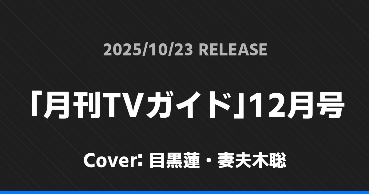 「月刊TVガイド」12月号の表紙は目黒蓮・妻夫木聡さんです!