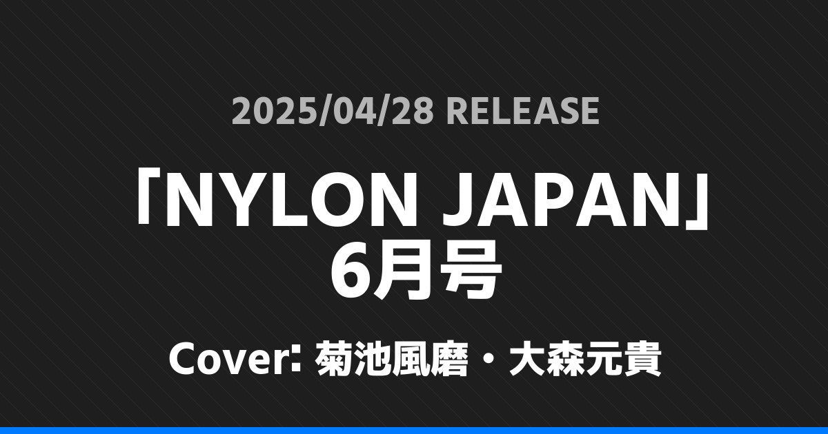 「NYLON JAPAN」6月号の表紙は菊池風磨・大森元貴さんです!