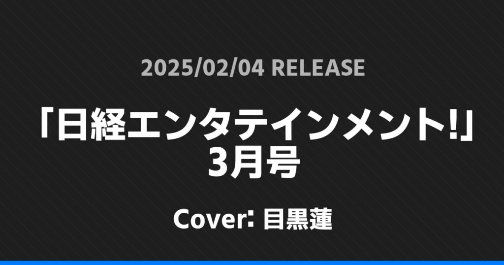 「日経エンタテインメント!」3月号表紙は目黒蓮!