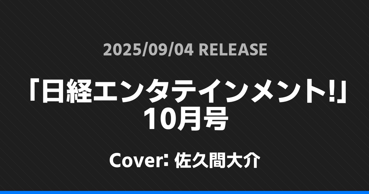 「日経エンタテインメント!」10月号表紙は佐久間大介! Snow Man 2026.01.24 ※本ページにはプロモーションが含まれています。 商品リンク Amazon 楽天ブックス セブンネット タワーレコード 詳細情報 発売日:2025/09/04 表紙:佐久間大介 「日経エンタテインメント!」10月号の表紙は佐久間大介さんです! 「andGIRL秋号」特別版表紙は髙地優吾! 「別冊spoon. 」vol.84表紙は長尾謙杜・山田杏奈! ホームSnow Man