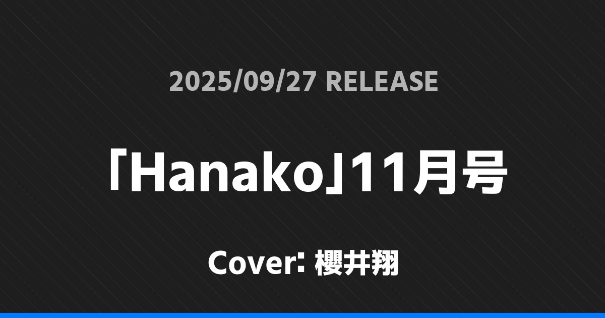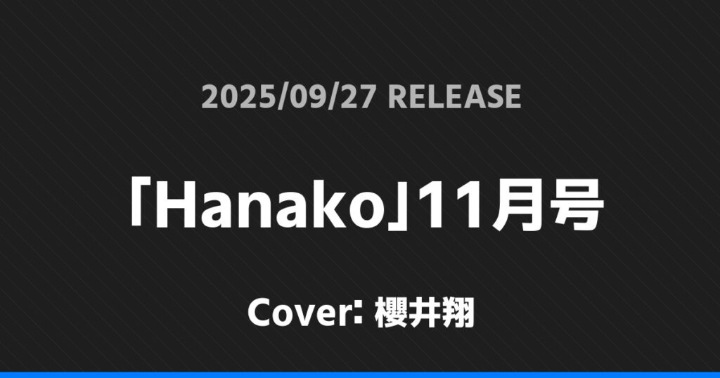 「Hanako」11月号表紙は櫻井翔!