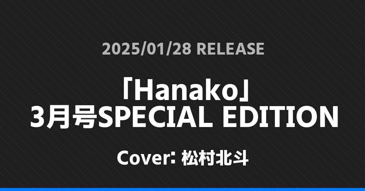 「Hanako」3月号SPECIAL EDITIONの表紙は松村北斗さんです!