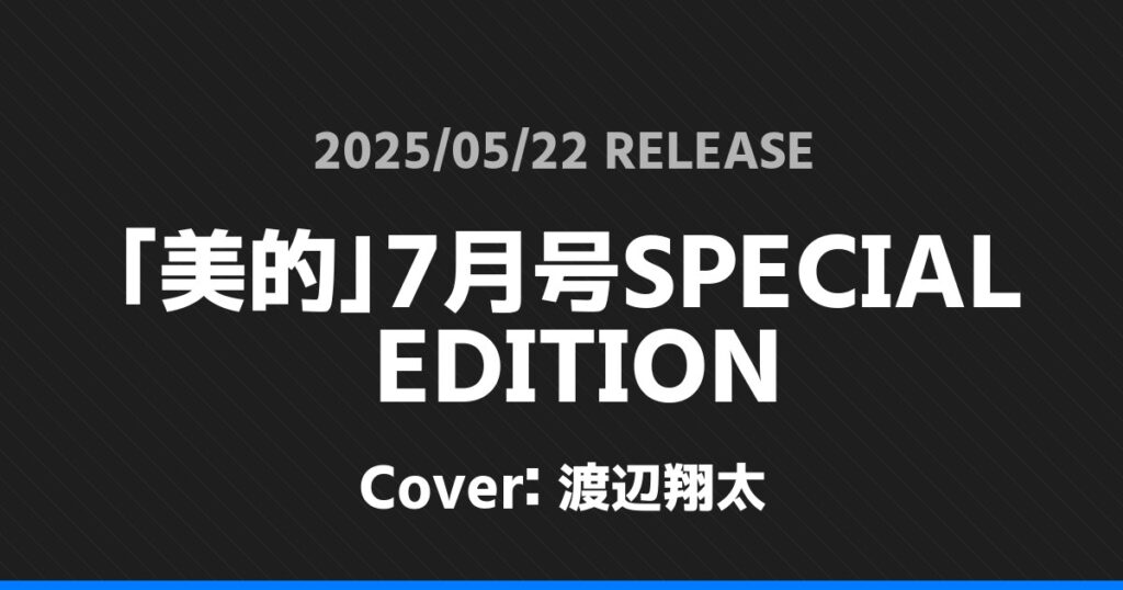 「美的」7月号SPECIAL EDITION表紙は渡辺翔太! Snow Man 2026.01.24 ※本ページにはプロモーションが含まれています。 商品リンク Amazon 楽天ブックス セブンネット タワーレコード 詳細情報 発売日:2025/05/22 表紙:渡辺翔太 「美的」7月号SPECIAL EDITIONの表紙は渡辺翔太さんです! 「Myojo」7月号表紙はKing & Prince! 「ViVi」7・8月合併号特別版表紙はSixTONES! ホームSnow Man