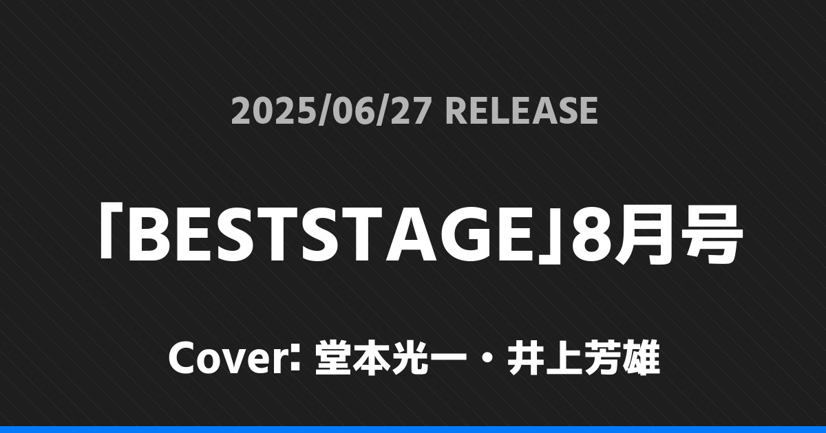 「BESTSTAGE」8月号の表紙は堂本光一・井上芳雄さんです!