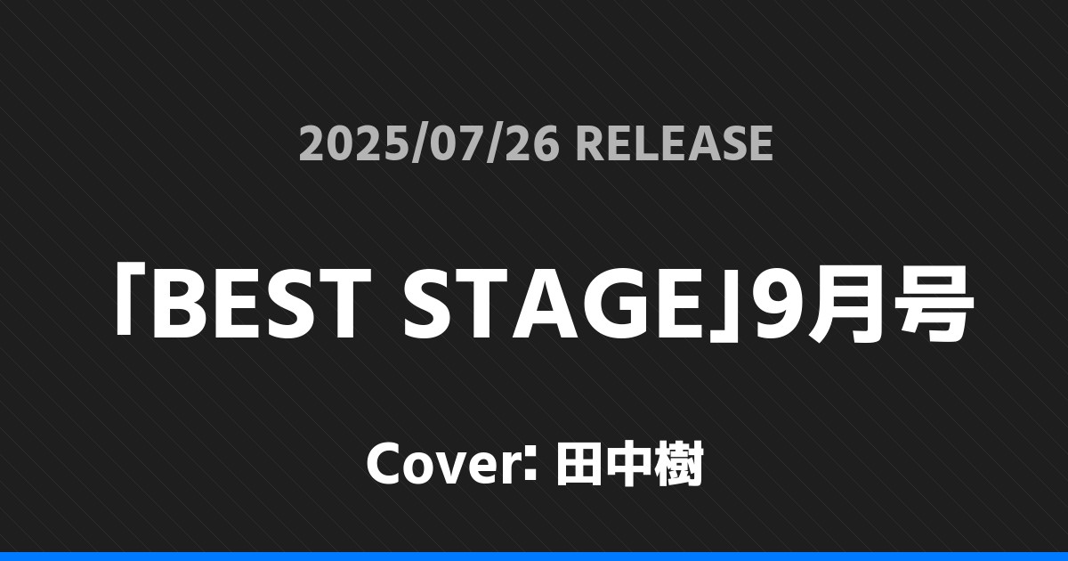 「BEST STAGE」9月号表紙は田中樹!