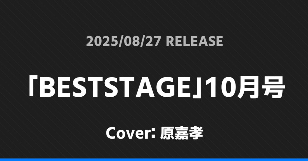 「BESTSTAGE」10月号表紙は原嘉孝! timelesz 2026.01.24 ※本ページにはプロモーションが含まれています。 商品リンク Amazon 楽天ブックス セブンネット タワーレコード 詳細情報 発売日:2025/08/27 表紙:原嘉孝 「BESTSTAGE」10月号の表紙は原嘉孝さんです! 「BAILA」10月号特別版表紙は伊野尾慧・知念侑李! 「anan」No.2460表紙は二宮和也! ホームtimelesz
