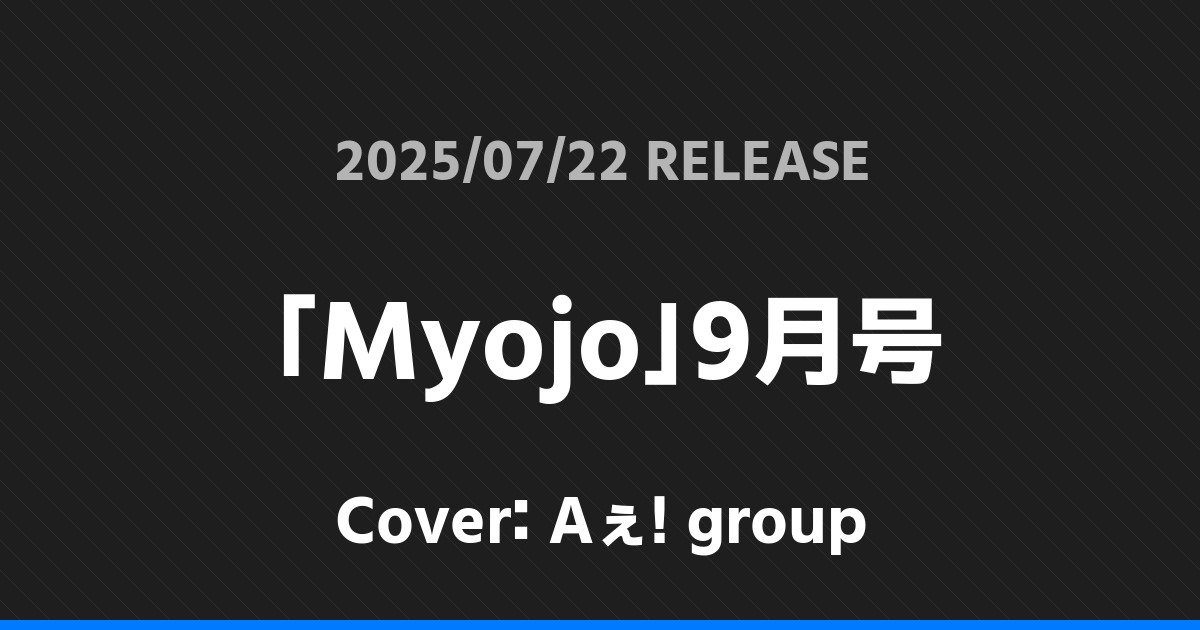 「Myojo」9月号表紙はAぇ! group! Aぇ! group 2026.01.24 ※本ページにはプロモーションが含まれています。 商品リンク Amazon 楽天ブックス セブンネット タワーレコード 詳細情報 発売日:2025/07/22 表紙:Aぇ! group 「Myojo」9月号の表紙はAぇ! groupさんです! 「ちっこいMyojo」9月号表紙はAぇ! group! 「MAQUIA」9月号特別版表紙はTravis Japan! ホームAぇ! group