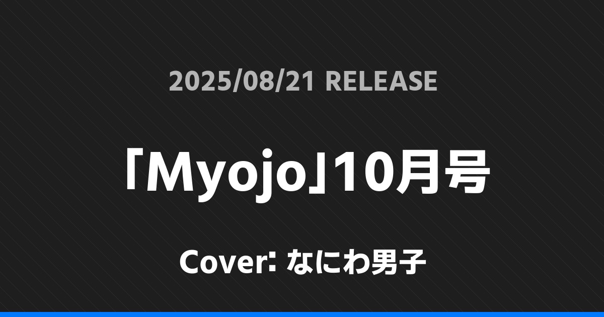 「Myojo」10月号表紙はなにわ男子! なにわ男子 2026.01.24 ※本ページにはプロモーションが含まれています。 商品リンク Amazon 楽天ブックス セブンネット タワーレコード 詳細情報 発売日:2025/08/21 表紙:なにわ男子 「Myojo」10月号の表紙はなにわ男子さんです! 「ちっこいMyojo」10月号表紙はなにわ男子! 「東海ウォーカー2025秋」表紙は松村北斗! ホームなにわ男子