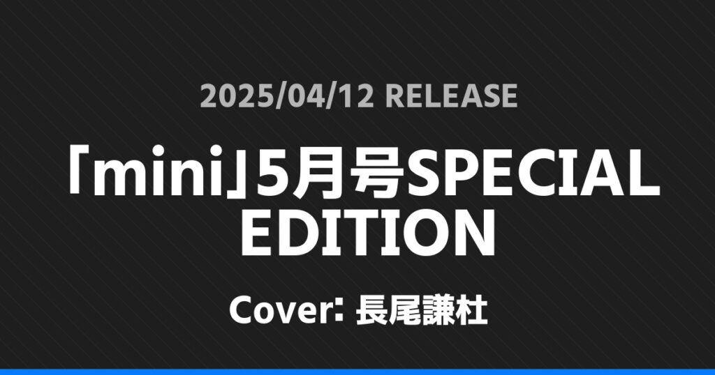 「mini」5月号SPECIAL EDITION表紙は長尾謙杜! なにわ男子 2026.01.24 ※本ページにはプロモーションが含まれています。 商品リンク Amazon 楽天ブックス セブンネット タワーレコード 詳細情報 発売日:2025/04/12 表紙:長尾謙杜 「mini」5月号SPECIAL EDITIONの表紙は長尾謙杜さんです! 「up PLUS」5月号表紙は井上瑞稀・中村嶺亜! 「週刊TVガイド」4/25号表紙は伊野尾慧・松倉海斗! ホームなにわ男子