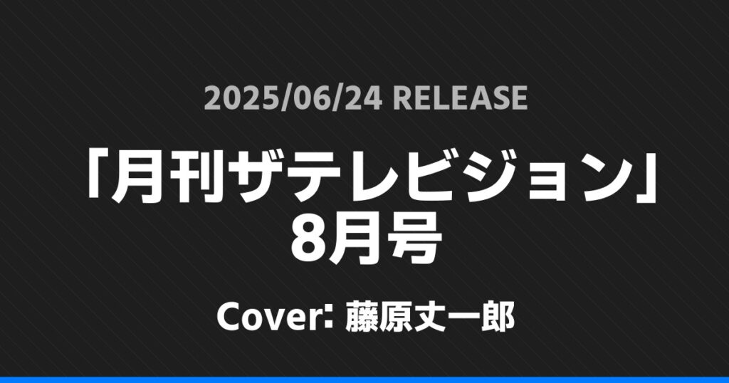 「月刊ザテレビジョン」8月号の表紙は藤原丈一郎さんです!
