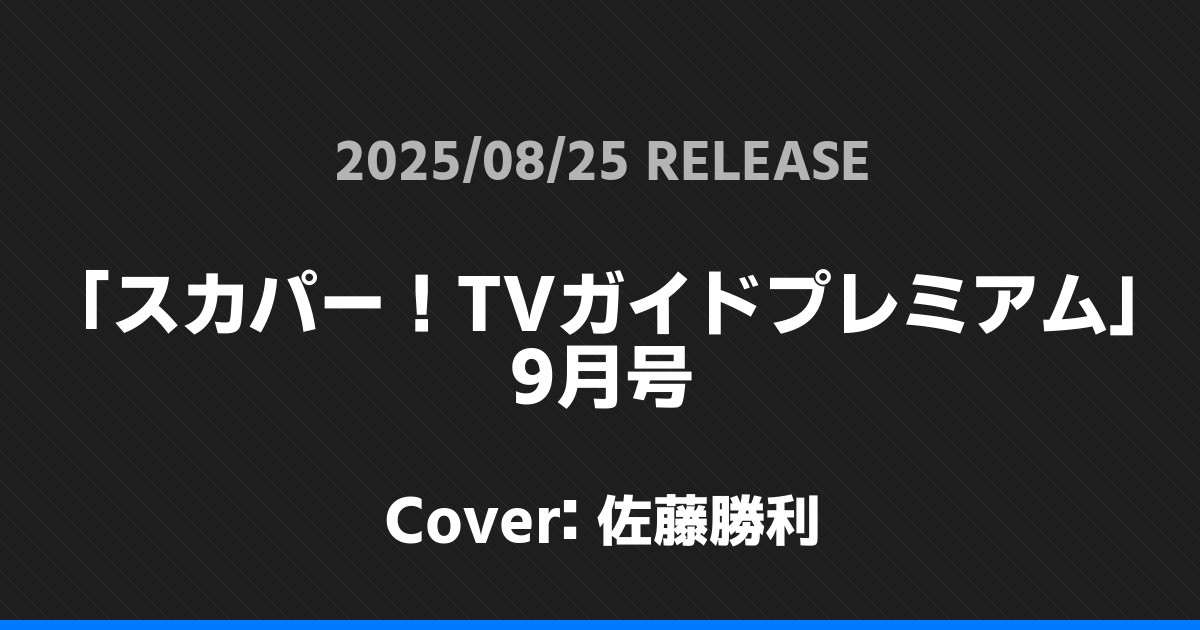 「スカパー!TVガイドプレミアム」9月号の表紙は佐藤勝利さんです!