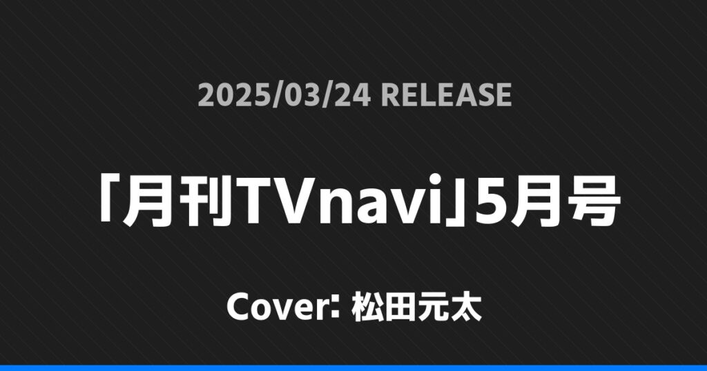 「月刊TVnavi」5月号の表紙は松田元太さんです!