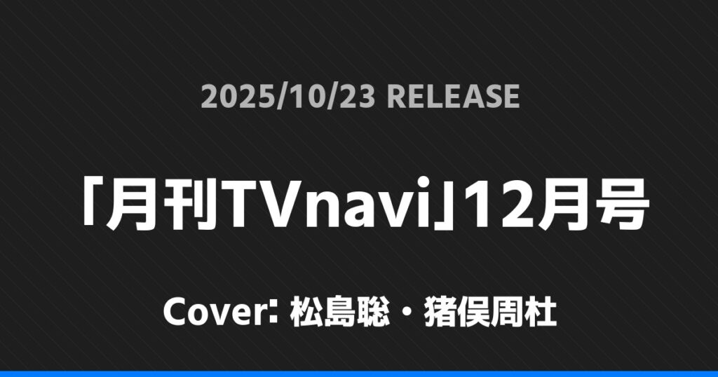 「月刊TVnavi」12月号の表紙は松島聡・猪俣周杜さんです!