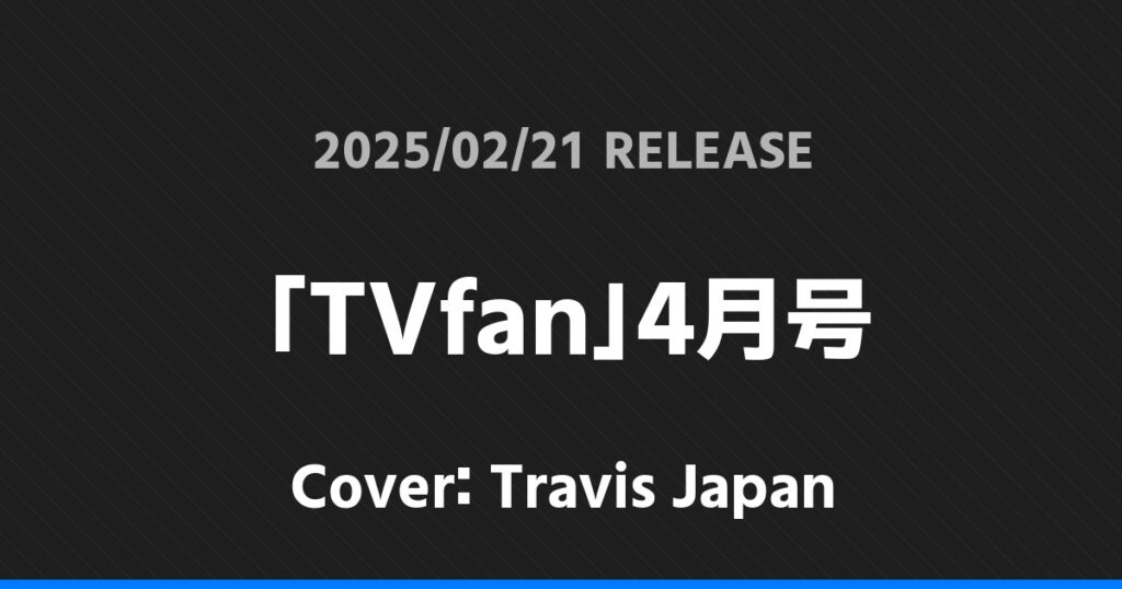 「TVfan」4月号の表紙はTravis Japanさんです!