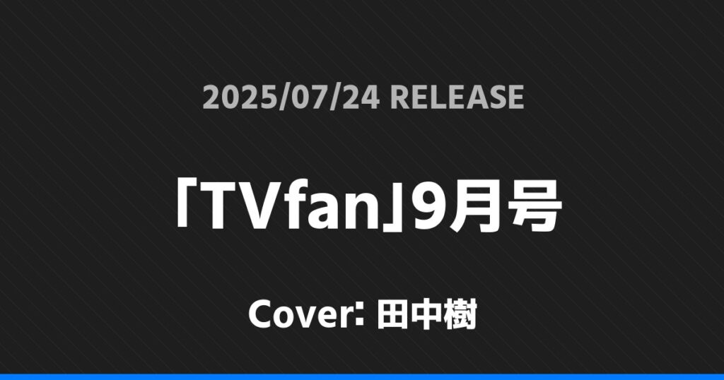 「TVfan」9月号表紙は田中樹! SixTONES 2026.01.24 ※本ページにはプロモーションが含まれています。 商品リンク Amazon 楽天ブックス セブンネット タワーレコード 詳細情報 発売日:2025/07/24 表紙:田中樹 「TVfan」9月号の表紙は田中樹さんです! 「デジタルTVガイド」9月号表紙は相葉雅紀・大森南朋・松下奈緒! 「STAGE navi」vol.103表紙は髙地優吾! ホームSixTONES