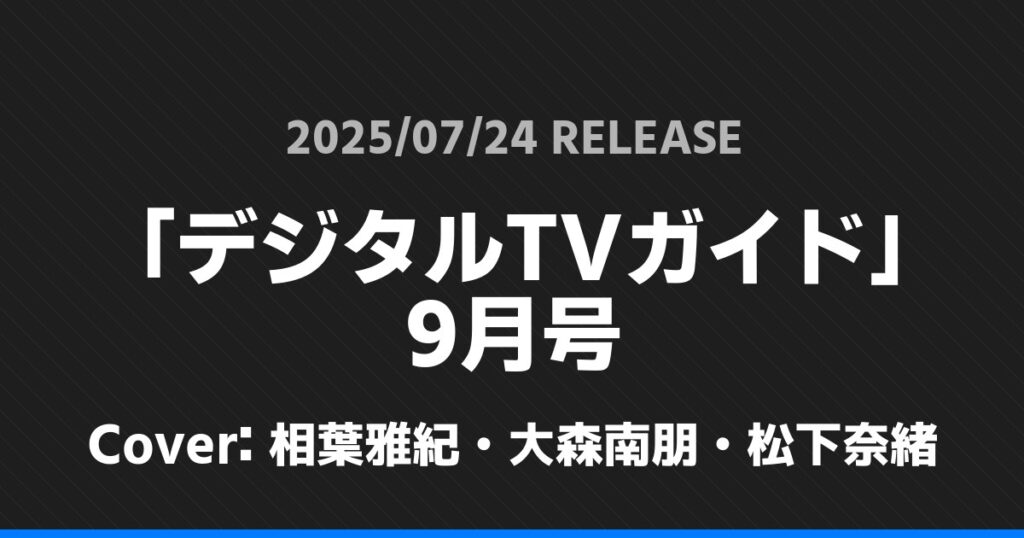 「デジタルTVガイド」9月号表紙は相葉雅紀・大森南朋・松下奈緒!
