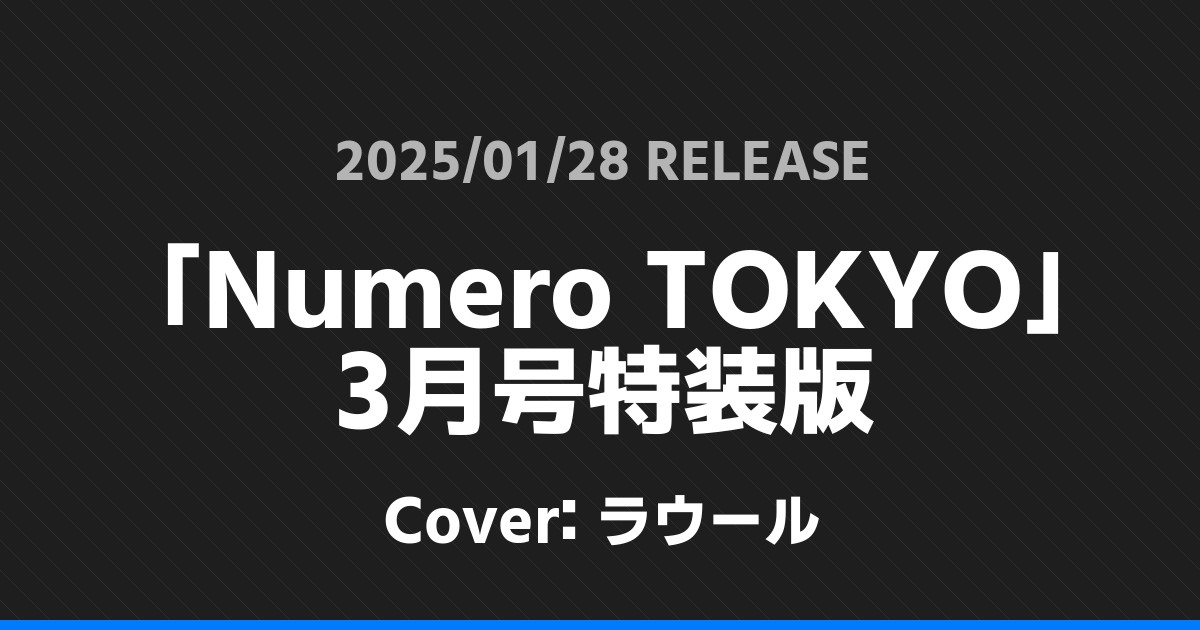 「Numero TOKYO」3月号特装版表紙はラウール! Snow Man 2026.01.24 ※本ページにはプロモーションが含まれています。 商品リンク Amazon 楽天ブックス セブンネット タワーレコード 詳細情報 発売日:2025/01/28 表紙:ラウール 「Numero TOKYO」3月号特装版の表紙はラウールさんです! 「Hanako」3月号SPECIAL EDITION表紙は松村北斗! 「CLASSY.」3月号特別版表紙は松村北斗! ホームSnow Man