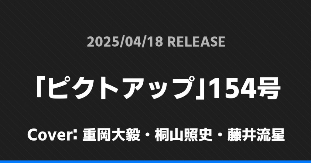 「ピクトアップ」154号表紙は重岡大毅・桐山照史・藤井流星! WEST. 2026.01.24 ※本ページにはプロモーションが含まれています。 商品リンク Amazon 楽天ブックス セブンネット タワーレコード 詳細情報 発売日:2025/04/18 表紙:重岡大毅・桐山照史・藤井流星 「ピクトアップ」154号の表紙は重岡大毅・桐山照史・藤井流星さんです! 「ベース・マガジン」5月号表紙は矢花黎・亀田誠治! 「BARFOUT! 」5月号表紙は阿部亮平! ホームWEST.