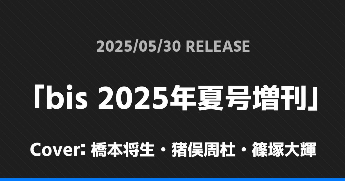 「bis 2025年夏号増刊」の表紙は橋本将生・猪俣周杜・篠塚大輝さんです!