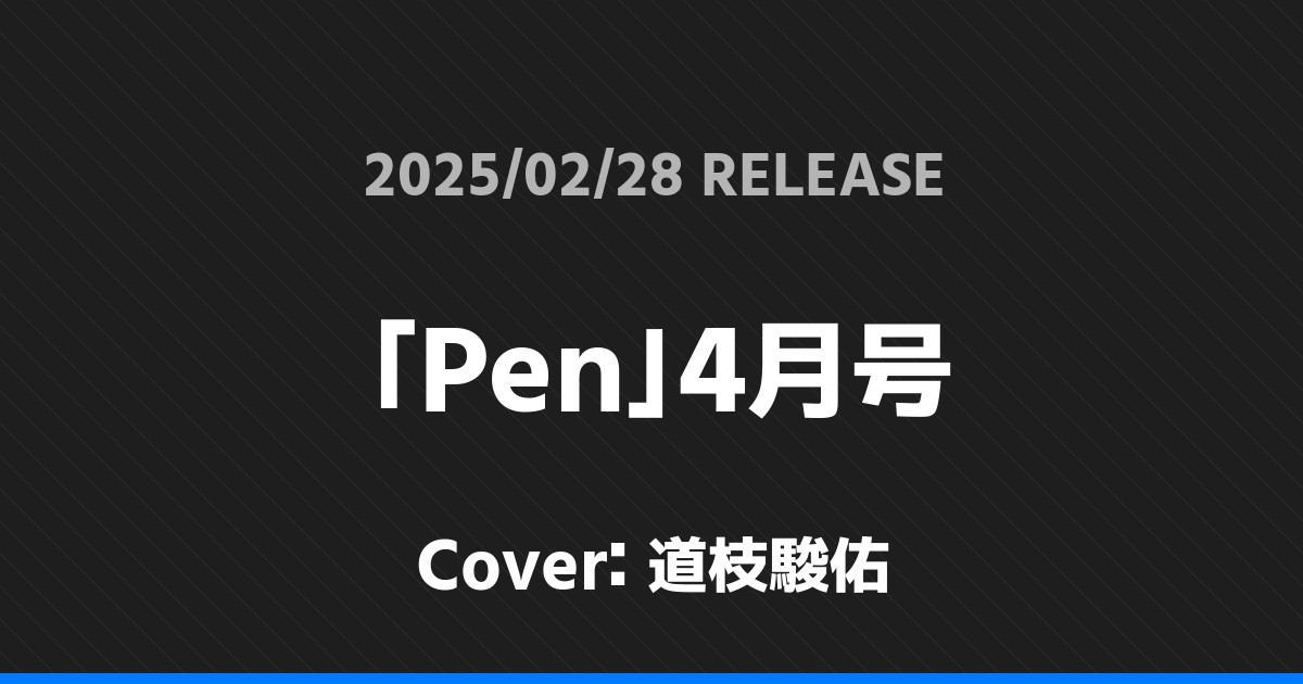 「Pen」4月号の表紙は道枝駿佑さんです!