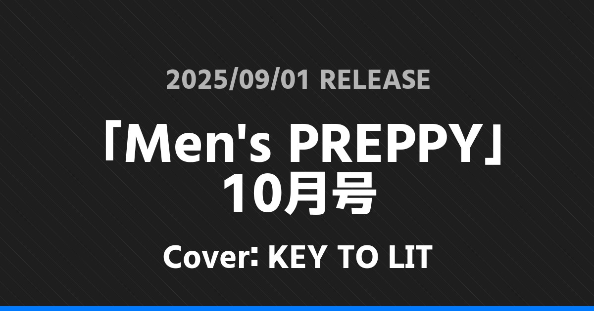 「Men’s PREPPY」10月号表紙はKEY TO LIT! ジュニア 2026.01.24 ※本ページにはプロモーションが含まれています。 商品リンク Amazon 楽天ブックス セブンネット タワーレコード 詳細情報 発売日:2025/09/01 表紙:KEY TO LIT 「Men’s PREPPY」10月号の表紙はKEY TO LITさんです! 「Eye-Ai」10月号表紙は髙橋海人! 「bis」2025年秋号増刊表紙は宮舘涼太・水上恒司! ホームジュニア