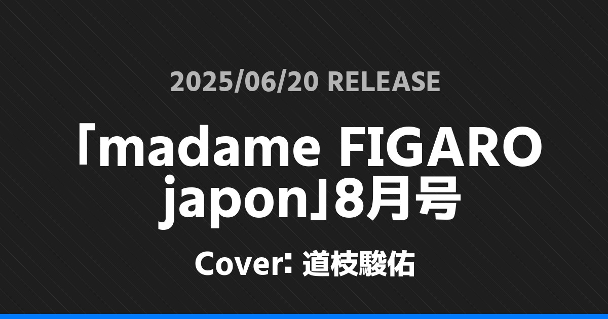 「madame FIGARO japon」8月号表紙は道枝駿佑! なにわ男子 2026.01.24 ※本ページにはプロモーションが含まれています。 商品リンク Amazon 楽天ブックス セブンネット タワーレコード 詳細情報 発売日:2025/06/20 表紙:道枝駿佑 「madame FIGARO japon」8月号の表紙は道枝駿佑さんです! 「anan」No.2451表紙は大橋和也! 「VOCE」8月号増刊表紙は佐久間大介! ホームなにわ男子