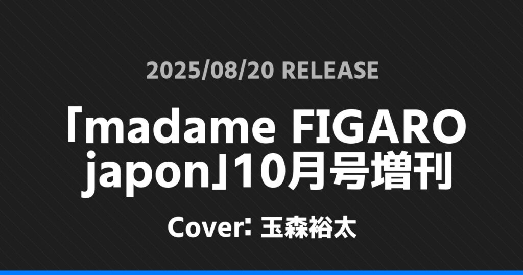 「madame FIGARO japon」10月号増刊の表紙は玉森裕太さんです!