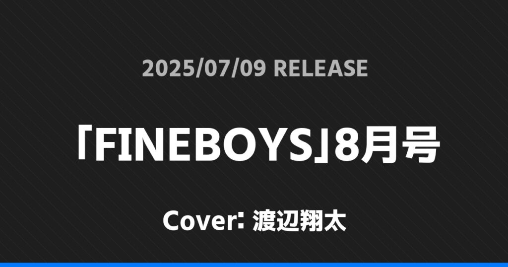 「FINEBOYS」8月号の表紙は渡辺翔太さんです!