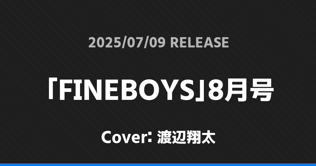 「FINEBOYS」8月号表紙は渡辺翔太!