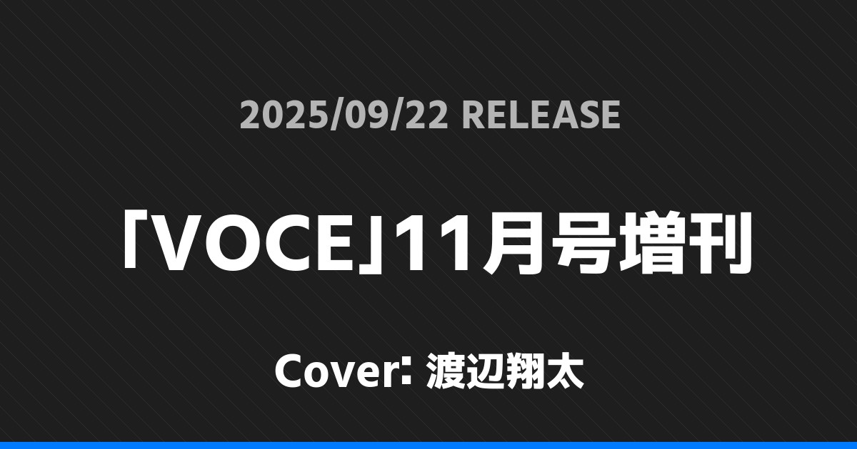 「VOCE」11月号増刊表紙は渡辺翔太! Snow Man 2026.01.24 ※本ページにはプロモーションが含まれています。 商品リンク Amazon 楽天ブックス セブンネット タワーレコード 詳細情報 発売日:2025/09/22 表紙:渡辺翔太 「VOCE」11月号増刊の表紙は渡辺翔太さんです! 「Ray」11月号特別版表紙は松村北斗! 「ちっこいMyojo」11月号表紙はTravis Japan! ホームSnow Man