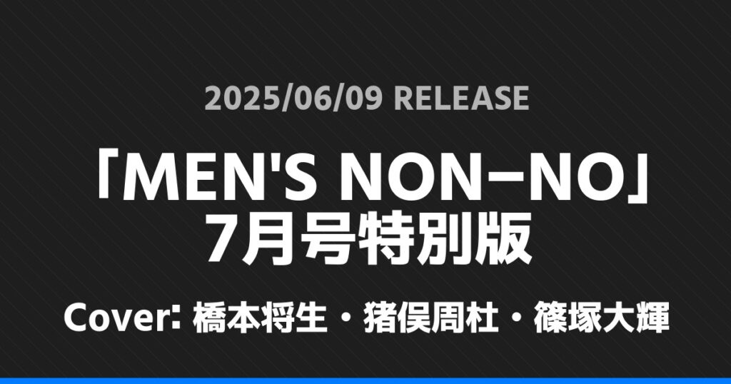 「MEN’S NON-NO」7月号特別版の表紙は橋本将生・猪俣周杜・篠塚大輝さんです!