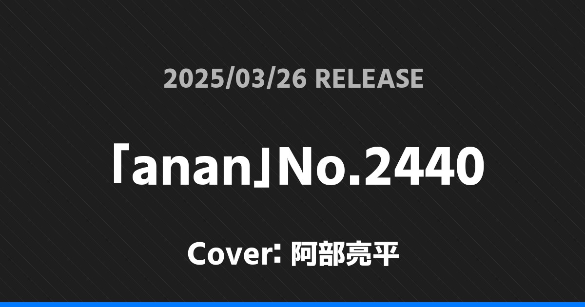 「anan」No.2440表紙は阿部亮平!