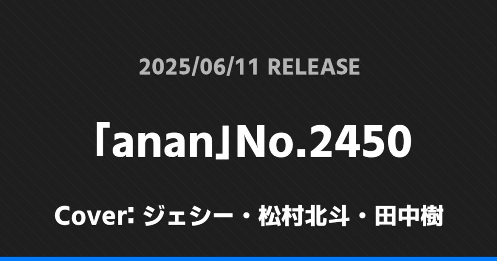 「anan」No.2450の表紙はジェシー・松村北斗・田中樹さんです!