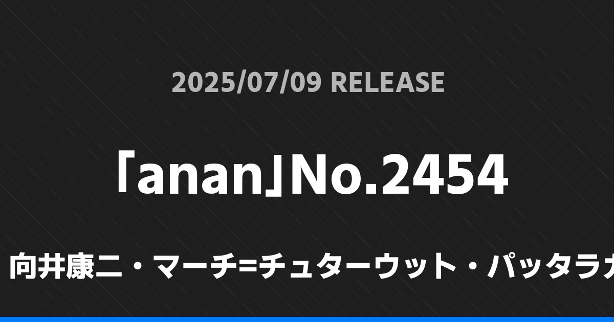 「anan」No.2454表紙は向井康二・マーチ=チュターウット・パッタラガムポン!