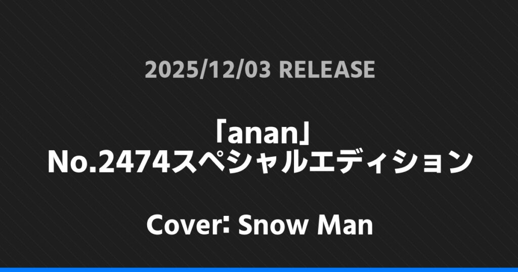 「anan」No.2474スペシャルエディションの表紙はSnow Manさんです!