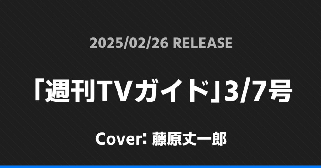 「週刊TVガイド」3/7号表紙は藤原丈一郎!