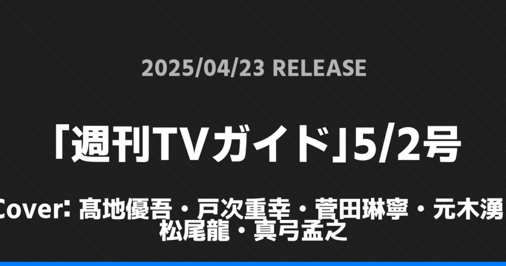 「週刊TVガイド」5/2号の表紙は髙地優吾・戸次重幸・菅田琳寧・元木湧・