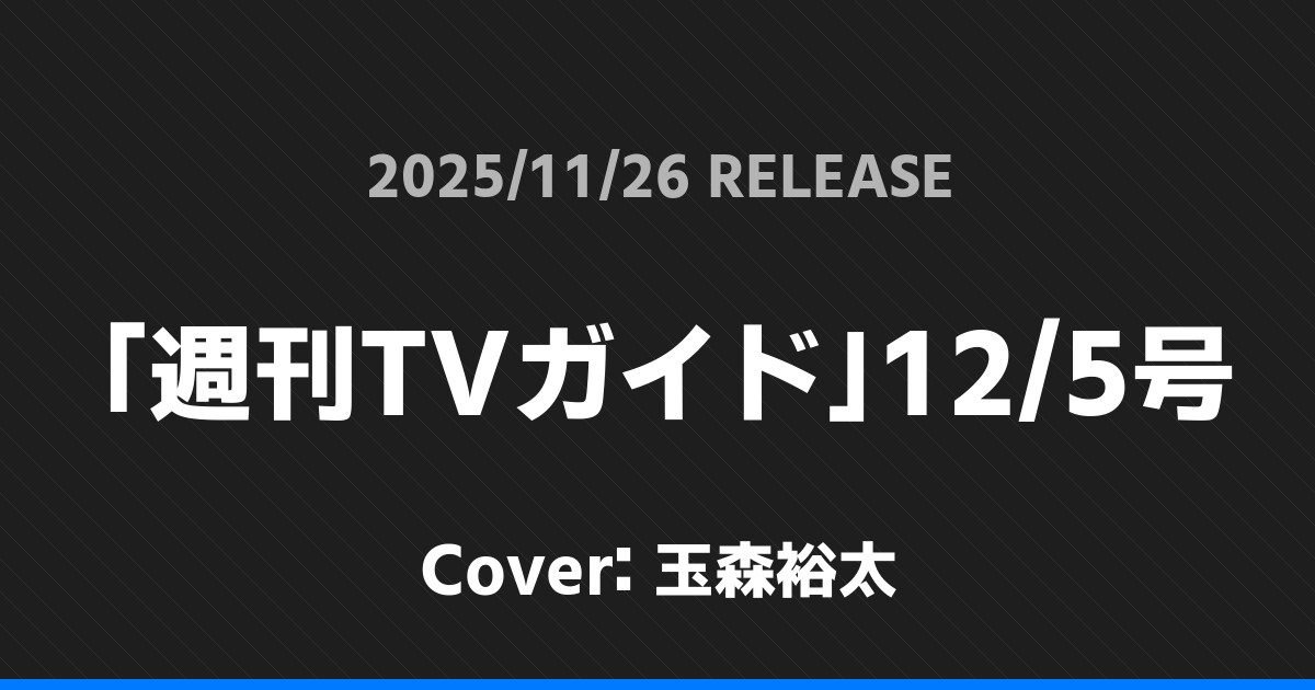「週刊TVガイド」12/5号表紙は玉森裕太!