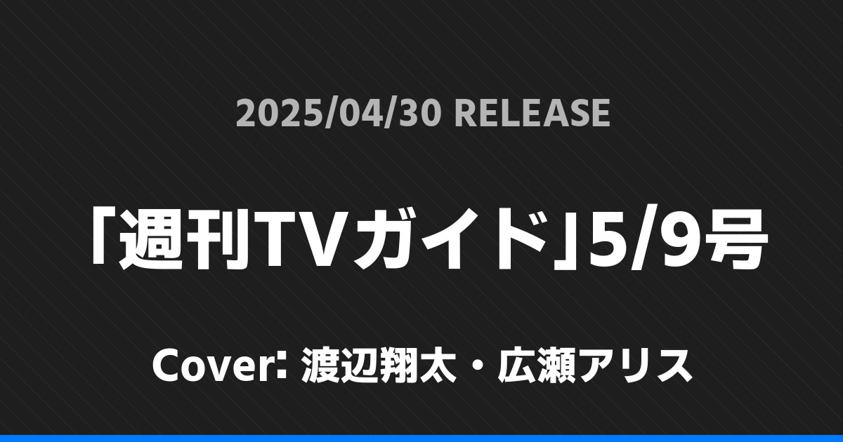 「週刊TVガイド」5/9号表紙は渡辺翔太・広瀬アリス!