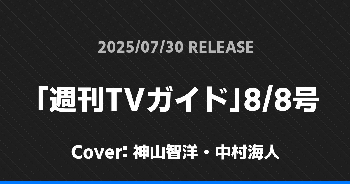 「週刊TVガイド」8/8号表紙は神山智洋・中村海人!