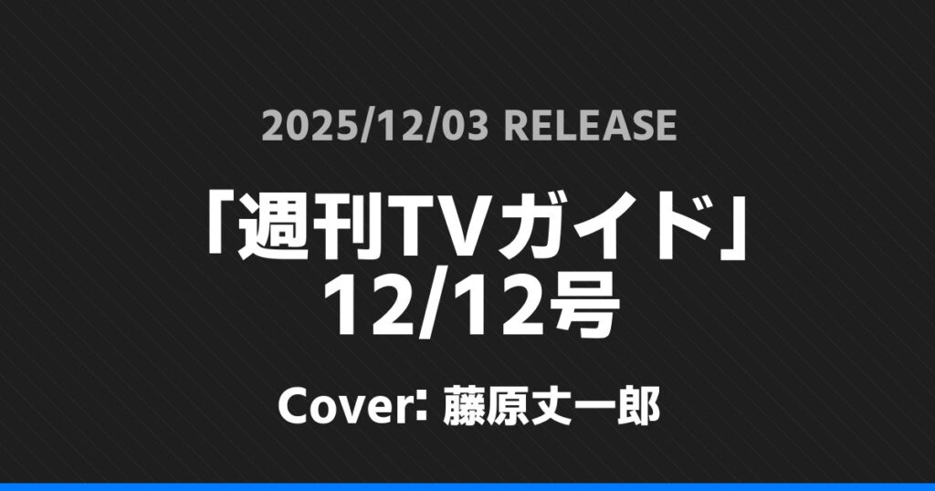 「週刊TVガイド」12/12号表紙は藤原丈一郎!